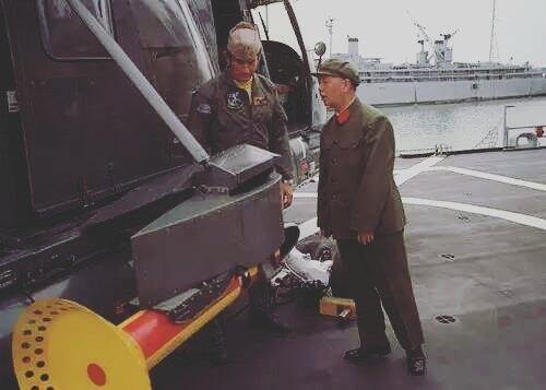 当月稍晚时,时任国务院副总理的耿飙访美,刘华清又陪同其登上了美国海军CV-61“突击者”号航母,留下了这张著名的照片: